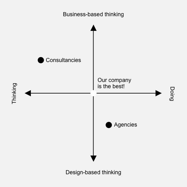 Consultancies use it to show that they are better than design agencies, because they acquired some agencies and can now execute too. And agencies don’t know shit about business, and can only do stuff without thinking.