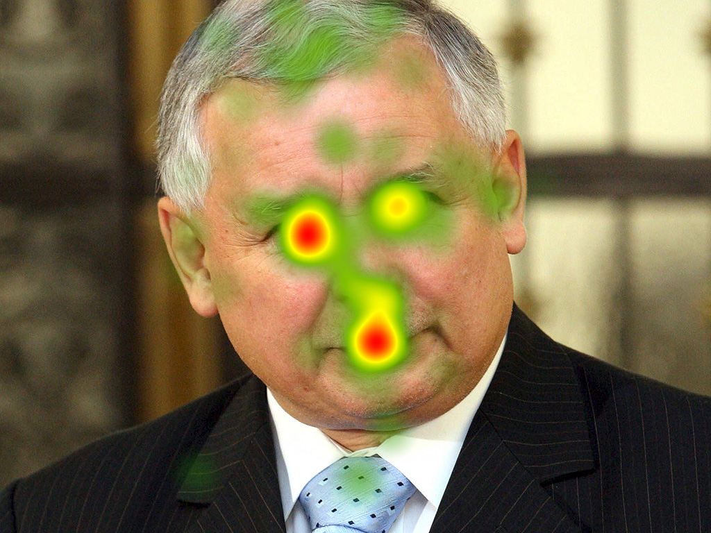 Wzrok respondentów przyciągały też różnego rodzaju defekty urody, czy elementy charakterystyczne - przedziałek Pawlaka, wąsy Macierewicza i Korwina Mikke, brodawka na czole Ryszarda Kalisza, łysiny i przerzedzone włosy - to wszystko punkty skupienia uwagi 🙂 Tego rodzaju rzeczy dostrzegamy w ciągu pierwszych kilku sekund. Patrząc na twarze naszych rządzących można się zastanawiać, czy polityk rzeczywiście musi być przystojny, czy raczej powinien być charakterystyczny?